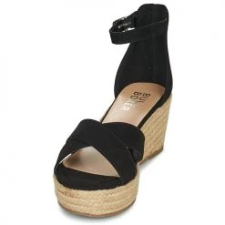 Dans le monde des nu-pieds, voici un modèle qui sait tirer son Ă©pingle du jeu. Bullboxer l’a imaginĂ© de couleur noire, très tendance cette saison. On l’aime pour son inspiration espadrille et le confort de sa semelle compensĂ©e.