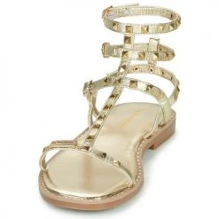Le modèle Coralie doré est sublime. Ses clous viennent ajouter une dose de rock à cette chaussure féminine.